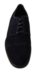 Blue Suede Leather Derby Studded Shoes