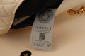 Indulge in the unmatched elegance of this stunning shoulder bag, presented by the prestigious house of Versace. This brand new accessory, complete with tags and its own dustbag, is a symbol of luxury and sophistication. Crafted from the finest Nappa Leather in a pristine white hue, this bag features a sleek flap snap closure, adorned with the iconic Medusa head logo. The interior boasts a main compartment and a slip pocket, perfect for organizing your essentials. Gold-tone hardware, along with a chic chain shoulder strap, offers versatility for wearing over the shoulder or as a crossbody, ensuring you make a statement wherever you go.