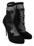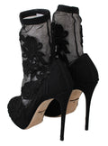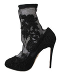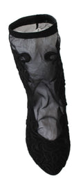 Gorgeous brand new with tags, 100% Authentic Dolce & Gabbana black stretch socks Roses embroidery stilettos booties shoes.
