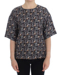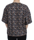 Gray Gold Key Print Silk Blouse T-shirt