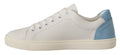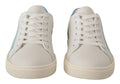 White Blue Leather Low Top Sneakers Shoes
