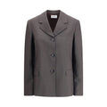 The Faelan Jacket by The Row embodies essential elegance with a refined tailored cut. Crafted from lightweight virgin wool and mohair, it features a single-breasted structure with classic lapels, flap front pockets, and horn button fastening, highlighting its timeless sophistication.
