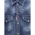 Dsquared2’s Fashion Western shirt combines classic Western style with an urban, lived-in aesthetic. Made of cotton denim with a vintage worn-effect design, it features a classic collar, front button closure and adjustable button cuffs. The two flap pockets on the chest complete the look with an authentic touch. A garment with a strong character, perfect for those seeking a distinctive and contemporary style.