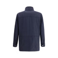 Brioni’s Field Jacket is a technical and stylish garment designed to face the elements in style. Made of water-repellent and wind-resistant fabric, it features a stand-up collar and a double zipper closure with metal snap buttons. An internal elasticated drawstring waist allows for an adjustable fit. A vertical breast pocket with leather tab, two front double-entry pockets, one inside zippered pocket and another with button closure complete the design. Perfect for functional elegance.