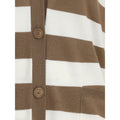 Max Mara’s Fiemme Cardigan is made of pure virgin wool yarn and features a striped pattern that lends dynamism and character to the design. With long sleeves, it is enriched on the back by a flocked decoration with the “1951” motif, a tribute to the brand’s tradition. A warm and distinctive garment, ideal for a casual yet sophisticated style.