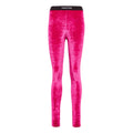 Tom Ford Fuchsia Stretch Velvet Leggings. Skinny stretch, elastic waistband with contrasting logo print, straight leg, soft, iridescent fabric.