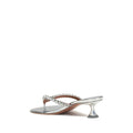 Amina Muaddi’s Gigi Sandals feature an open round toe and a flip-flop upper embellished with sparkling rhinestones. The kitten heel with metallic finish lends a touch of modern elegance, making these sandals perfect for a sophisticated and shiny look.