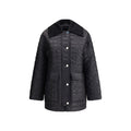 Ganni’s Down jacket is a garment that combines style and functionality, perfect for facing the cold season with elegance. Featuring a wide corduroy collar, it lends a touch of sophistication to the design. The front closure, with a zipper and snaps, ensures a comfortable and secure fit. The two patch pockets on the front with flaps add practicality and a stylish accent. Quilted design and padding with a glossy finish complete the look, giving a sophisticated and protective appearance.
