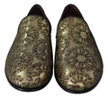 Gold Jacquard Flats Mens Loafers Shoes