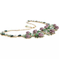 Gold Brass Link Chain Rose Petal Crystal Necklace