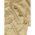 Gold color, front fastening with plexi-covered buttons with logo, pocket closed with snap button on the side, regular fit.