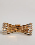 Gold Tone Brass Bow Crystal FauxPearl Embellished Brooch