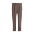 Brunello Cucinelli’s tailored Pants blend classic elegance with contemporary comfort. The elasticized waistband and mock front closure give the garment a refined look while maintaining a relaxed fit. The two side welt pockets and back pockets add functionality, while the tightening bottom enhances the leg line with a modern, casual touch.