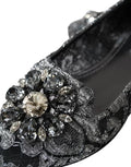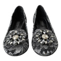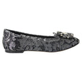 Gray Black Lace Crystal Ballet Loafers Shoes