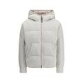 Lurex Padded Down Jacket by Brunello Cucinelli is a garment that flawlessly combines practicality and luxury. The hooded design offers extra protection against the cold, while the front closure with a double-slider zipper allows for easy and versatile adjustment. The two side welt pockets are perfect for storing small items securely. Applied all-over lurex gives the down jacket a shimmering, sophisticated effect, while the ribbed design adds an interesting touch of texture. Padded and quilted, this down jacket provides optimal warmth, making it ideal for the colder seasons without sacrificing style and elegance.