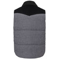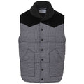 Gran Sasso Prince of Wales Padded Sleeveless Jacket. Front fastening with exposed snap buttons, two pockets on the side, black wool collar with bouclé effect. Black corduroy panel on contrasting chest and front. Rounded pattern at bottom. Composition: 100% Cotton, 100% Polyester. Inner Sku: 24SET32
