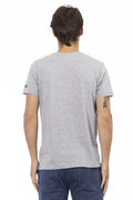 Discover the urban sophistication of a ‘Trussardi Action’ T-shirt, where casual attire meets high-end style. This Gray V-neck is adorned with a striking front print, delivering a bold statement to any ensemble. Crafted from a luxurious blend of cotton and viscose, it promises comfort and durability with a touch of class. Embrace a trendsetting piece designed for the fashion-forward individual.