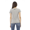 Elevate your style with the chic simplicity of Trussardi Action’s Short Sleeve T-Shirt. Crafted with a blend of plush cotton and viscose, this tee promises unrivaled comfort and breathability. Its sleek gray hue and eye-catching front print add a dash of elegance to the classic V-neck design. Perfect for the fashion-forward woman who enjoys a blend of casual ease and trendy sophistication.