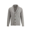 The Virgin Wool Shawl-Collar Cardigan blends comfort and refinement in a timeless silhouette. The ribbed texture enhances the natural softness of the yarn, giving the piece structure and depth. Button fastening highlights its classic character, while the shawl collar introduces a touch of effortless elegance. A wardrobe essential designed to bring style and ease to everyday moments.