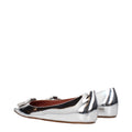 The product with MPN CAMELIAFLATMIRRORSILVER and code F84588 leather in silver is a ballet flats designed by Amina Muaddi. It has features like front detail, rhinestone.