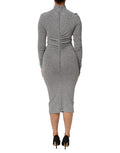 Gray Nylon Bodycon Sheath Long Sleeves Dress