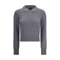 The Pinko Sweater combines simplicity and precious details. Featuring a ribbed hem and cuffs, it stands out for its rhinestone-decorated collar, which adds a touch of light and femininity to the essential design.