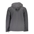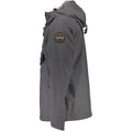 long-sleeved rainforest jacket, hood, 1 central pocket with zip and felt closure, side zip, application, logo, 30% recycled materials