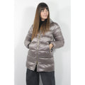 People Of Shibuya quilted down jacket in ultralight technical fabric with “pearl finish” treatment. 90/10 goose down filling. Inside bib snap closure, outside zipper closure with central double-slider die-cast zipper with gold finish and new round logo. Exterior pockets with zipper closure. Applied 3D lycra logo in color tone. Hood and bib in 70/30 wool. High-visibility reflective details.