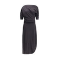 The Twisted Midi Dress by Lemaire explores form through movement and asymmetry. Its draped, fitted cut shapes a fluid silhouette, while the braided sleeve details and twisted hem create a quiet sense of rhythm. The adjustable cotton belt completes a piece that merges precision and freedom with essential elegance.