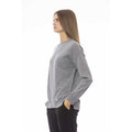 Indulge in the seamless blend of luxury and comfort with this Baldinini Trend Crew Neck Sweater. Its richly ribbed texture and the chic central seam capture the essence of Italian craftsmanship. The subtle flair of side slits complements the sophistication of the metal monogram, making it a statement piece for trendsetters. Perfect for those who value elegance with a modern twist.