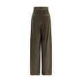 The Wide-Leg Velvet Pants by Max Mara bring a sophisticated twist to masculine-inspired tailoring. Made from pure cotton velvet with a 500-rib texture, they sit high on the waist and fall into a fluid, elongated wide-leg silhouette. The tailored construction features a structured waistband with zip and hook fastening, side pockets, welt pockets at the back, and front pleats that enhance their refined appeal. Fully lined, they combine sartorial precision with timeless elegance.