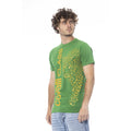 Elevate your wardrobe with the bold sophistication of a Cavalli Class Solid Color T-shirt. This emblem of trendsetting fashion is more than a basic; it’s a statement. Boasting the iconic Cavalli Class logo print on a lush green backdrop, this tee is tailored to cater to the discerning tastes of the contemporary man. Made from premium cotton, it promises comfort and durability, making it an essential for every fashion-forward closet.