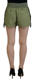 Green Cotton Mid Waist Drawstring Tapered Shorts