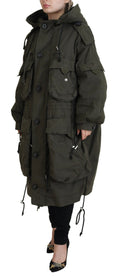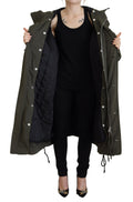 Green Hooded Full Zip Long Parka Coat Jacket