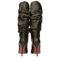 The product with MPN ANOKBOOTIECRACKLEMUD and code F82618 leather in green is a boots designed by Amina Muaddi. It has features like aged effect, vintage effect.