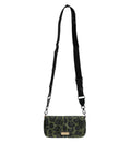 Green Nylon Leopard Print Shell Messenger Crossbody Bag