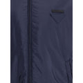 Nylon jacket with an all-over quilted design by Prada, perfect for tackling mid-season in style. Featuring an adjustable drawstring hood and front zipper closure, it has two handy side welt pockets and elastic cuffs for a comfortable fit. The iconic triangular logo patch applied to the chest lends a distinctive touch to the garment, while the adjustable drawstring hem completes the functional and contemporary design. A high-end outerwear garment, ideal for an urban and sophisticated look.
