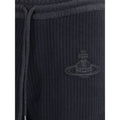Vivienne Westwood’s Ibiza Sweatpants combine comfort and urban style. Made in a drawstring mid-rise style, they feature a straight leg and ankle length. The ribbed hem at the bottom leg and ribbed inserts add structure, while the Graffiti Orb pattern lends a distinctive graphic touch. Two side slit pockets and a patch pocket on the back complete the design.