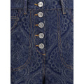 Etro’s jacquard-patterned flare Jeans feature an abstract jacquard pattern on lightly stretch délavé cotton denim. The five-pocket style features a fitted shape at the hips and flared from the knee down, with a Pegaso button closure. The design is completed with ETRO and Pegaso logoed leather back salpa for an iconic and sought-after touch.