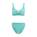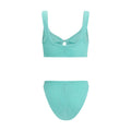 The Julia Swimsuit by Hunza G is ideal for those seeking a sophisticated and modern look. The bikini model is composed of low-waisted bottoms and a top with straps, enriched by a cut-out detail with a tortoiseshell ring on the front, which adds a touch of distinctive style. The exclusive Original Crinkle workmanship allows the fabric to stretch to flex, sculpt and support every curve, adapting perfectly to all body types, ensuring a unique fit.
