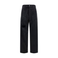 Cotton Kim Pants by Golden Goose, featuring a low-waisted five-pocket design, a front button and zipper closure, waistband loops, an iconic branded signature leather patch with press-stamped applique at the back, a monochrome pattern with all-over shiny moniline details, a frayed cut-out detail at the front panel, and a regular fit.