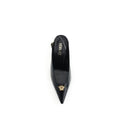 Versace’s La Medusa slingback Pumps combine elegance and iconic identity in a refined design. Crafted from glossy calfskin, they feature a pointed silhouette and a low heel that makes them comfortable and versatile. The adjustable ankle strap ensures a secure fit, while the three-dimensional La Medusa accessory on the front adds a distinctive touch typical of Versace’s bold style.