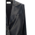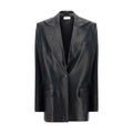 Leather Blazer Jacket by Magda Butrym, front button closure, spear lapels, two side flap welt pockets, one front welt pocket, two back slits, structured shoulders, regular fit.