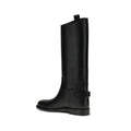 Leather high Boots by Burberry combine essential lines and iconic details in a sleek, functional design. Featuring a flat sole and round toe, they offer a comfortable fit for everyday wear. There is a decorative buckle at the back, while the side logo pull tab adds a distinctive touch that echoes the brand’s identity.