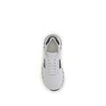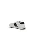 Prada’s leather Sneakers feature a two-tone design that combines elegance and contemporary style. Featuring a lace-up closure and reinforced toe for added durability, they are complemented by the logo on the back, the brand’s iconic and recognizable detail.