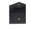 Saint Laurent’s leather Wallet combines functionality and style in a compact and elegant design. Featuring a snap-button closure, it features a logo plaque on the front that adds an iconic touch. There is a handy slit pocket on the back, while the interior is organized with card slots and a dedicated compartment perfect for everyday essentials.