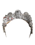 LED Crystal Embellished Silver Floral Filigree Crown Tiara