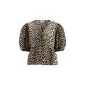 Ganni’s Leopard cotton Shirt is a feminine, punchy piece featuring an open round neckline with ribbons to tie. Puffed sleeves with elastic edges and a peplum hem add volume and movement for a bold, refined look.