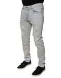 Gorgeous brand new, 100% Authentic Dolce & Gabbana cotton tattered skinny denim jeans with logo plaque.