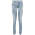 Elevate your denim game with the edgy sophistication of Dsquared²’s light wash slim-fit jeans. Crafted with precision in Italy, these jeans feature an artful display of rips and distressed detailing for an effortlessly cool, worn-in look. With a traditional five-pocket design and adorned with a bold, faux logo patch on the back, they encapsulate the brand’s penchant for rebellious luxury. Make a statement with Dsquared²’s denim mastery.